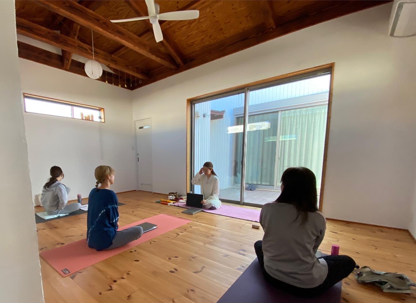 忙しい私たちはつい「今ここ」にいることを忘れてしまいますが、先生のクラスに来ると「今」に帰ってこれて、とても安心感のある時間を過ごすことができています。